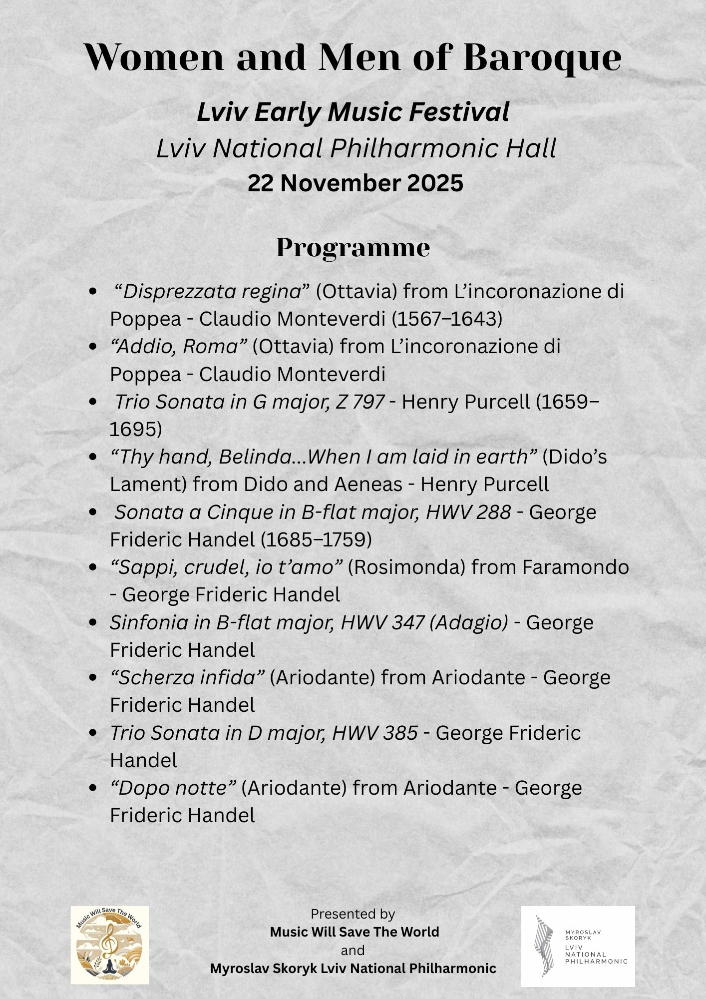 #MusicWillSaveTheWorld #UKUkraineCulturalBridge #ArtForChange #BaroqueMusic #HistoricalPerformance #EarlyMusic #Handel #Monteverdi #ViolaDaGamba #Harpsichord #LvivPhilharmonic #Lviv #UkraineCulture #BritishMusiciansAbroad #CulturalExchange #Ukraine